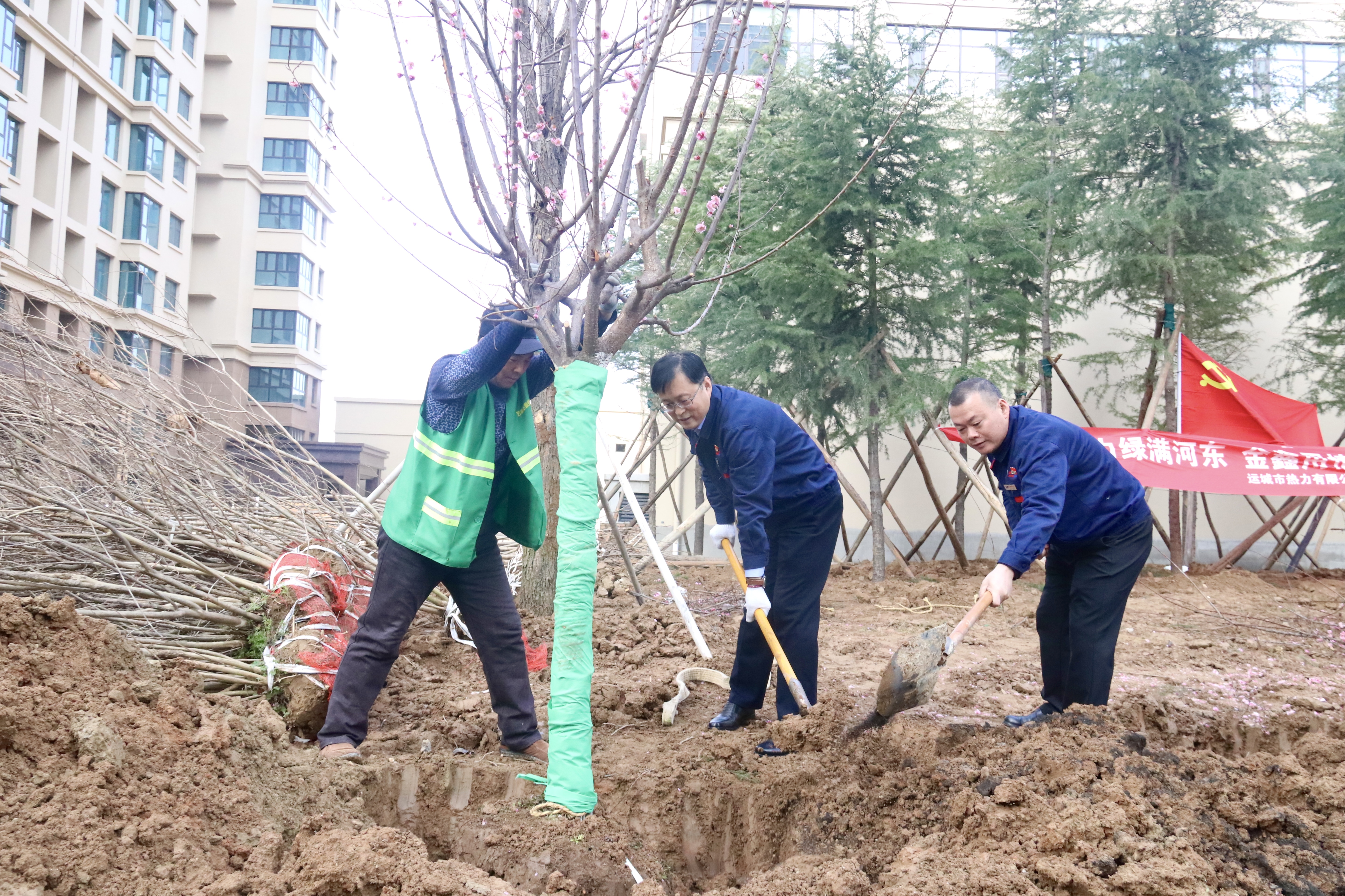 人勤春來早,植綠正當(dāng)時(shí)。3月12日,機(jī)關(guān)第二黨支部組織全體黨員、積極分子,協(xié)同黨群工作部、金鑫物業(yè)工作人員在濱湖一號(hào)小區(qū)舉行義務(wù)植樹活動(dòng)。黨委委員、紀(jì)委書記王尚君同志,黨委委員、副總經(jīng)理樊晟同志,總經(jīng)理助理王學(xué)鋒同志以普通黨員身份參加了活動(dòng),與大家一起植樹,為初春的小區(qū)增添了清新綠意。在植樹過程中,同志們互相幫助,輪番上陣,既參與植樹綠化,美化了環(huán)境,增強(qiáng)了植綠、護(hù)綠、愛綠的意識(shí),同時(shí)也提升了黨支部的凝聚力和戰(zhàn)斗力。人勤春來早,植綠正當(dāng)時(shí)。3月12日,機(jī)關(guān)第二黨支部組織全體黨員、積極分子,協(xié)同黨群工作部、金鑫物業(yè)工作人員在濱湖一號(hào)小區(qū)舉行義務(wù)植樹活動(dòng)。黨委委員、紀(jì)委書記王尚君同志,黨委委員、副總經(jīng)理樊晟同志,總經(jīng)理助理王學(xué)鋒同志以普通黨員身份參加了活動(dòng),與大家一起植樹,為初春的小區(qū)增添了清新綠意。在植樹過程中,同志們互相幫助,輪番上陣,既參與植樹綠化,美化了環(huán)境,增強(qiáng)了植綠、護(hù)綠、愛綠的意識(shí),同時(shí)也提升了黨支部的凝聚力和戰(zhàn)斗力。