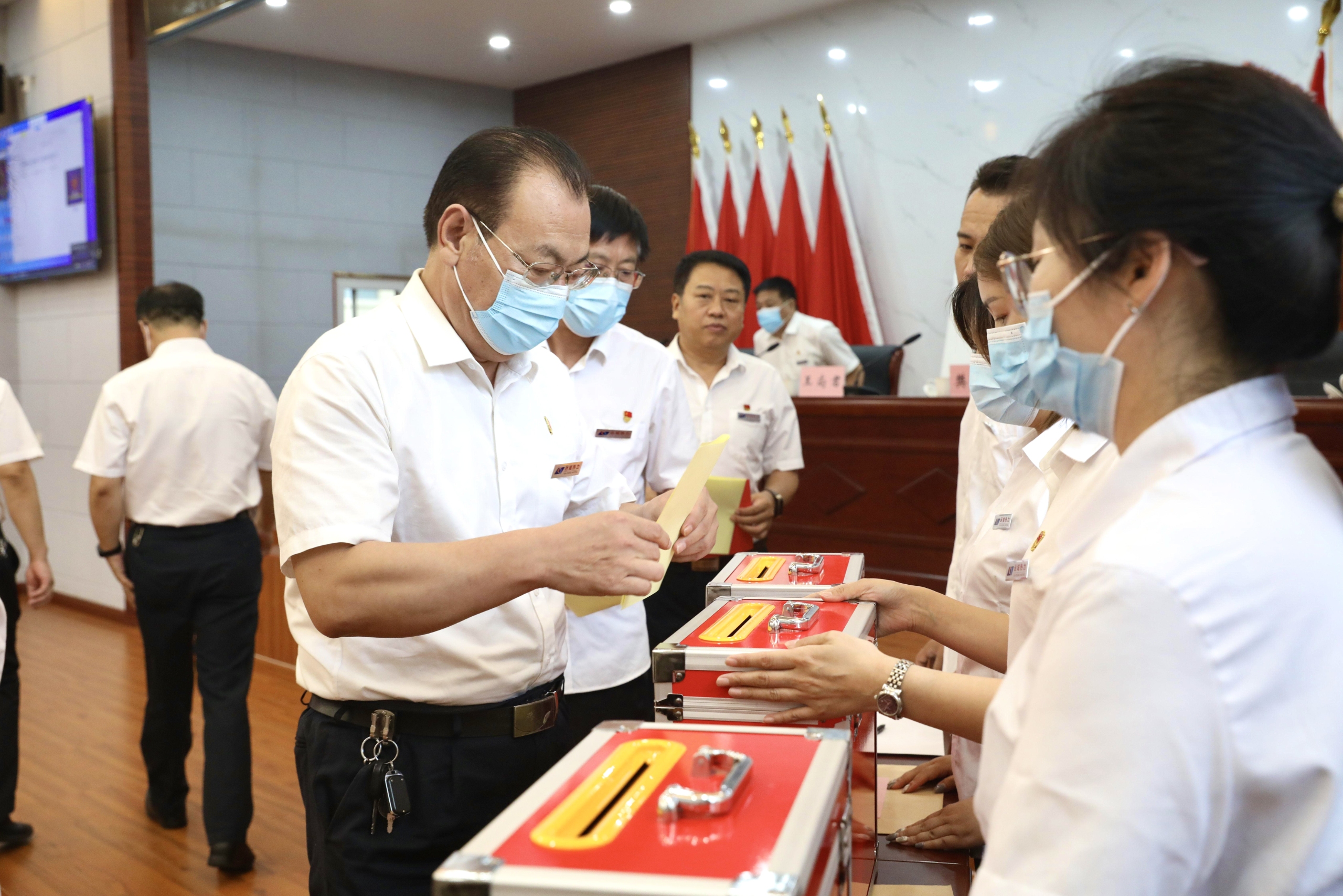 8月12日下午,公司工會(huì)在機(jī)關(guān)六樓會(huì)議室召開第三次會(huì)員代表大會(huì),選舉產(chǎn)生第三屆工會(huì)委員會(huì)、經(jīng)費(fèi)審查委員會(huì)及女職工委員會(huì)。公司黨委書記、董事長馬福森出席會(huì)議并作重要講話。會(huì)議由工會(huì)籌備領(lǐng)導(dǎo)組常務(wù)副組長張世科主持,大會(huì)應(yīng)到會(huì)員代表56名,實(shí)到56名。為確,F(xiàn)場參會(huì)人數(shù)滿足疫情防控要求,會(huì)場人員間隔一米就座,全程佩戴口罩。