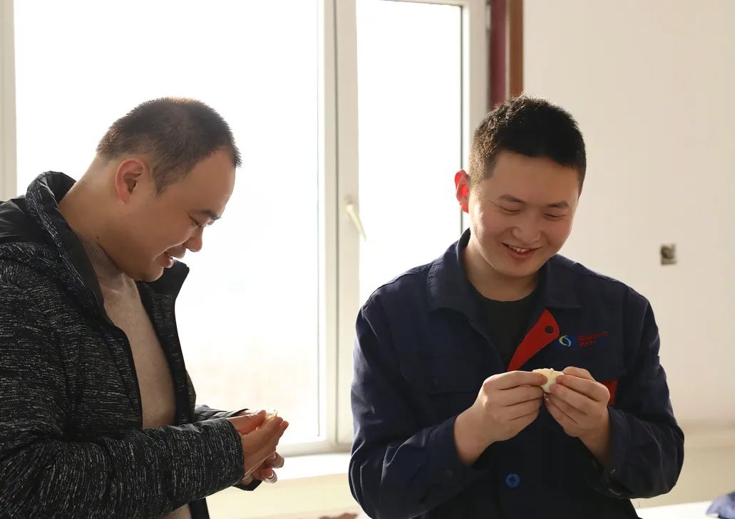 活動現(xiàn)場大家和面團、搟面皮、包餃子……忙得不亦樂乎,彰顯了熱力人的齊心合力,體現(xiàn)了領(lǐng)導(dǎo)與職工間的和諧相處、以及職工相互間的感情與友誼,讓大家感受到熱力大家庭的溫暖,更好地激發(fā)了大家的工作熱情,到處洋溢著祥和歡樂的節(jié)日氛圍。